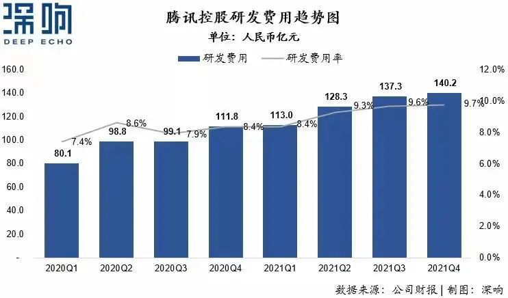 昨天发布的华为年度报告显示,华为2021年研发投入1427亿元,占全年收入的22.4%,创历史新高。此前发布的腾讯财报显示,腾讯2021年研发费用达518.8亿元,同比增长33.1%。而百度2021年研发费用为249亿元(其中不含爱奇艺的核心研发投入221亿元),同比增长28%。