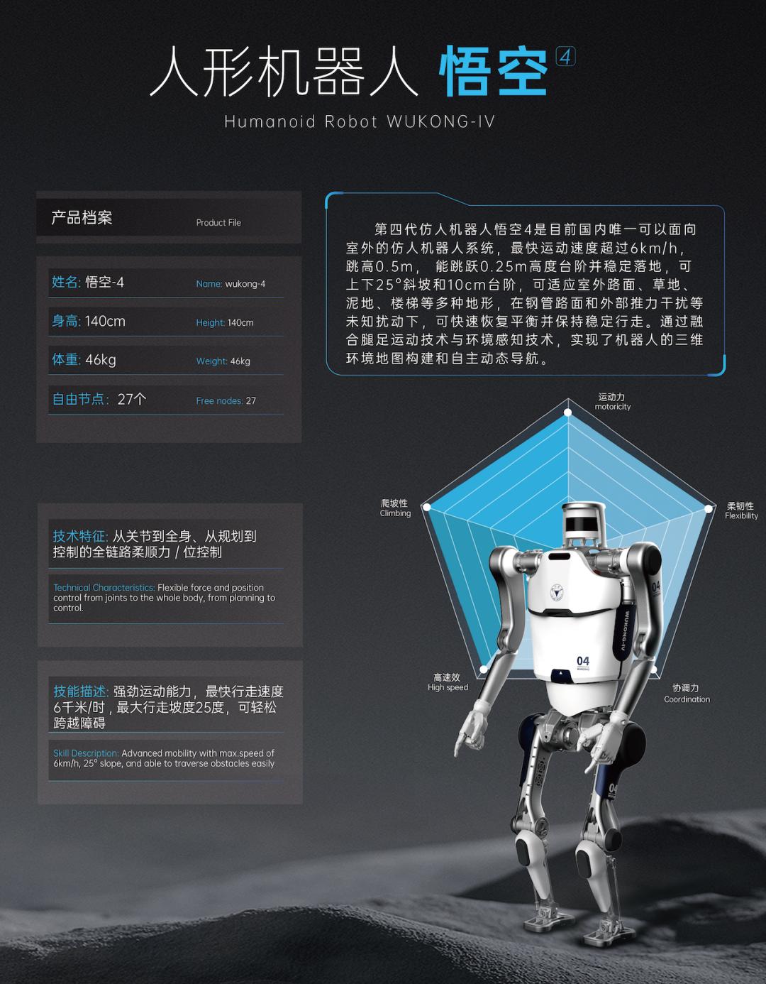 来自浙江大学控制学院机器人团队的同学也带着“悟空-4”人形机器人来到了会上。据了解,“悟空-4”可适应室外路面、草丛、泥泞路面等多种地形,最快运动速度可以达到6公里/小时,还能跳高0.5米,还可以可上下25度斜坡和10厘米台阶。在路面打滑和外部推力干扰等未知扰动下,可快速恢复平衡并保持稳定行走。