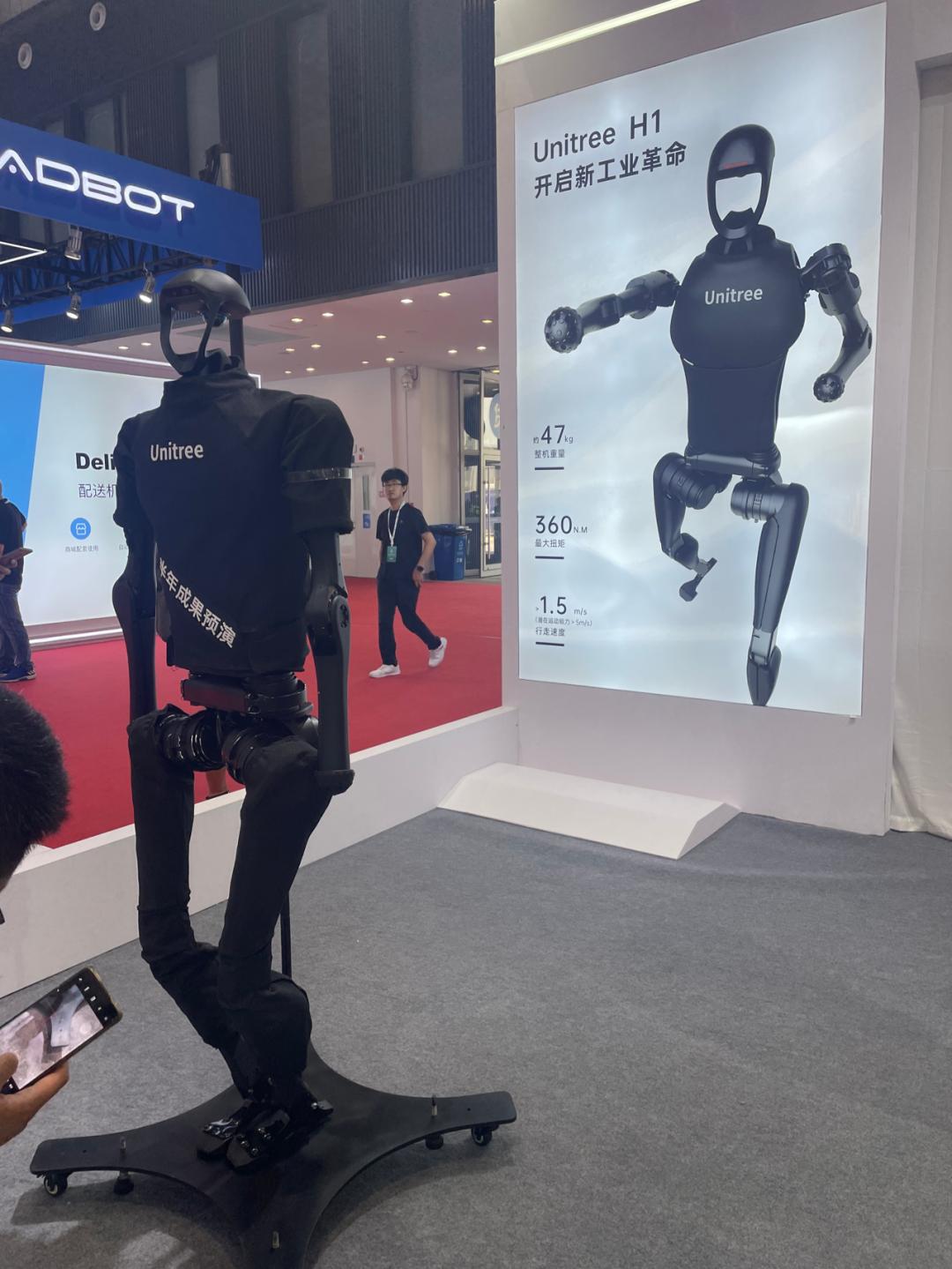 机器人公司宇树科技不仅带来了已经在行业场景中落地的四足机器人,也带来最新发布的人形机器人H1。