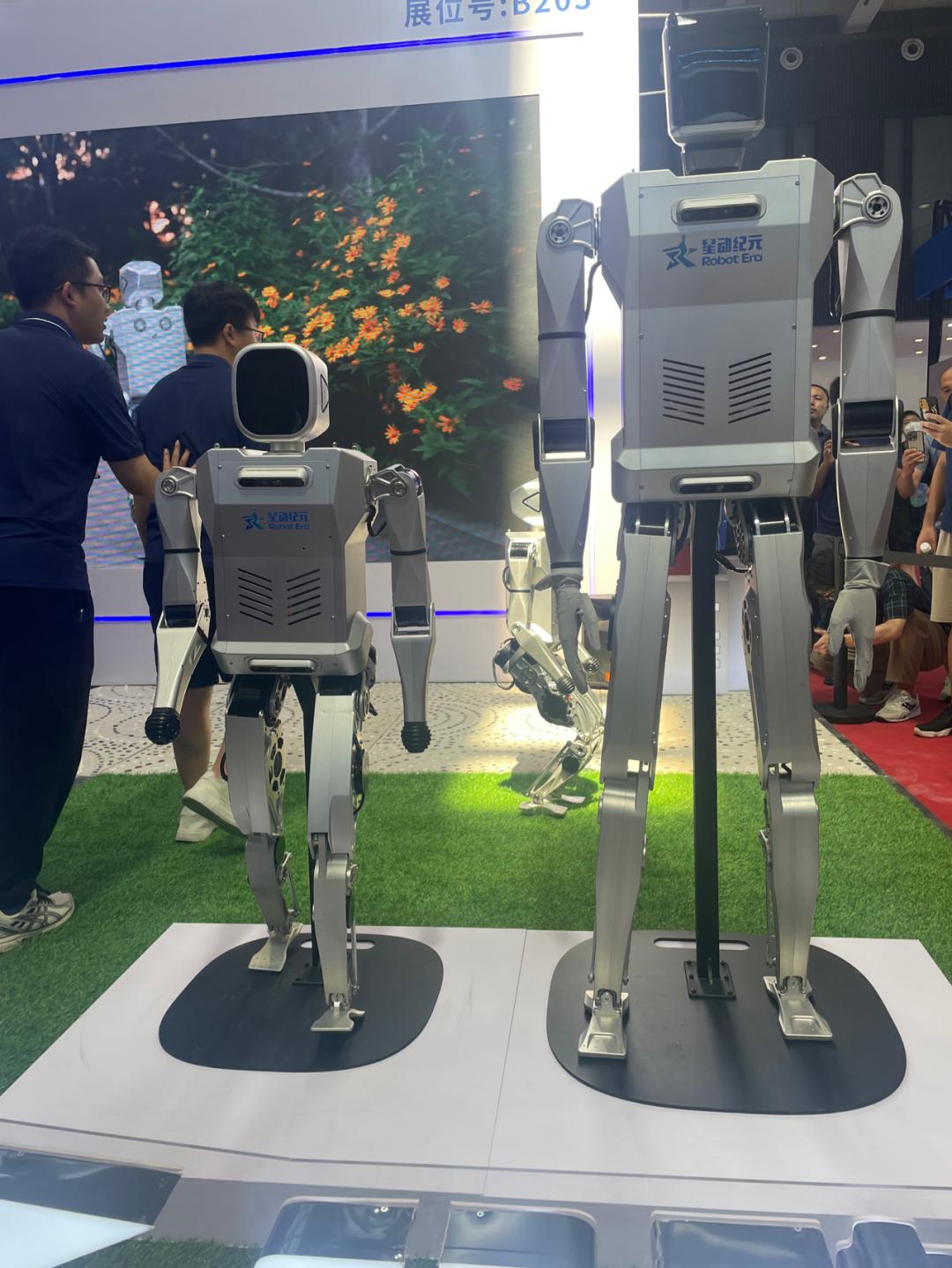 这是2023世界机器人大会上热闹的一角。今年的大会,160家国内外机器人企业,600件机器人都在现场久违的大秀了一把肌肉。人形机器人抢走了大部分风头。全球知名的波士顿动力创始人Marc Raibert、日本知名机器人学者石黑浩都来了。