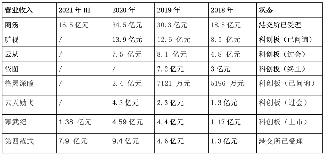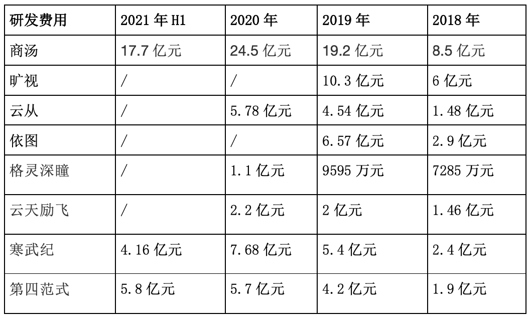 原标题:AI 公司营收、亏损、研发投入对比:商汤、旷视、云从、依图、寒武纪、第四范式、云天励飞、格灵深瞳