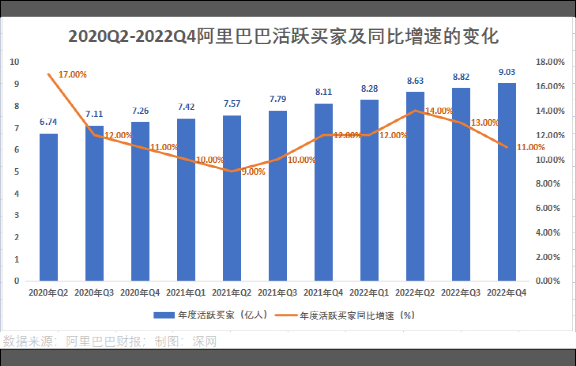 对于阿里巴巴来说,最好的消息是在过去一年里活跃消费者仍保持不错增长。财报显示,过去12月里,年度活跃消费者达到约13.1亿人,比截至2021年12月31日的12个月增加了2830万人。