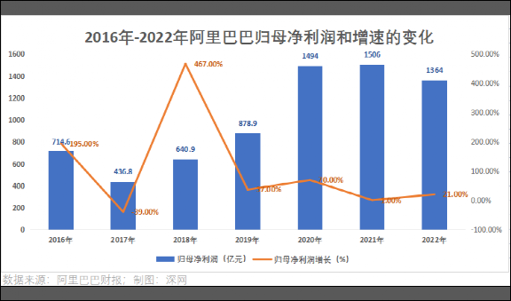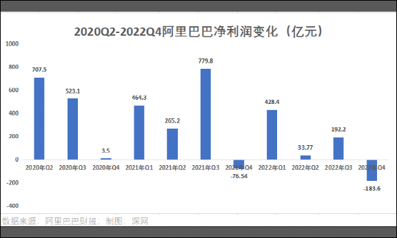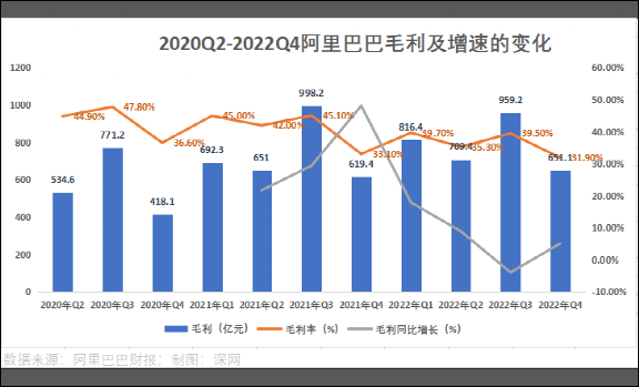 此外,阿里巴巴利润下滑一个重要原因是以96亿美元回购了约6000万股美国存托股,由于股价下滑,该部分也造成损失。